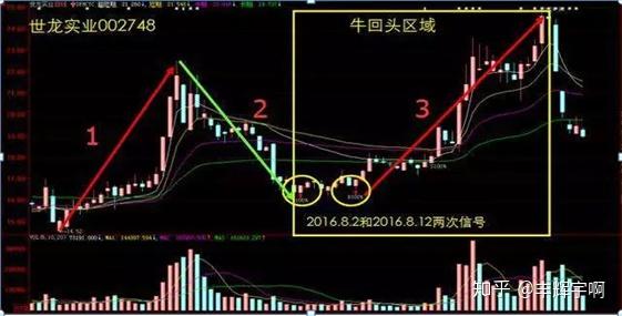 图中2,和3之间那个黄色圆圈里面的红色箭头就是牛回头量化信号。