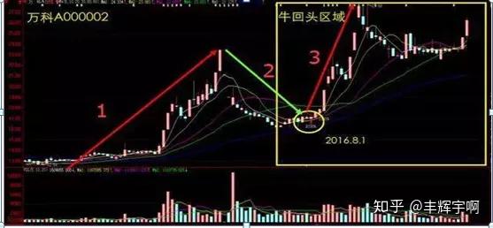 上图万科在去年股权大战之前的走势,也走出了非常美妙的牛回头行情,第一波你跟不上没关系,可以做第二波。