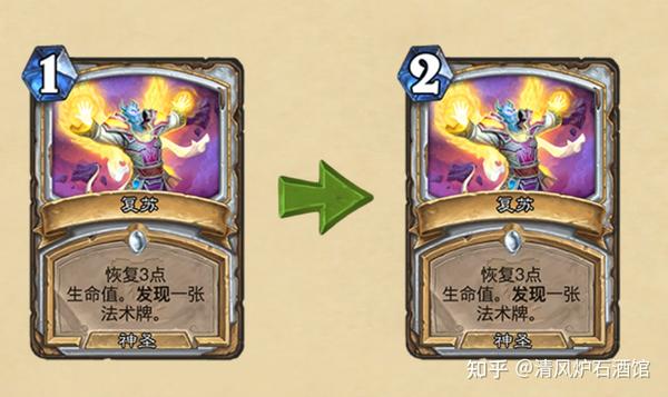 复苏这张牌有不少人是没想到的,之前大家讨论的是亡者复生和解读手相会削弱哪一个,结果削弱了复苏,不过仔细想想也是合理的,一方面1费回3血还能发现法术牌确实强,而一费法术是可以被魔杖工匠拿到的,牧师的1费法术都挺好用的,这让魔杖工匠在牧师的卡组里非常常见,削弱之后,魔杖工匠不会再给复苏了,之前可能出现的魔杖工匠给复苏,复苏发现王者复生再继续复生魔杖工匠的套娃成为过去式了。