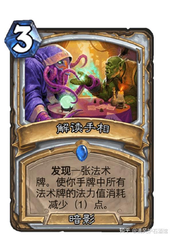 牧师的补牌和发现都是亏节奏的,这一点是没错的,但是牧师本身就是不怕亏节奏的,而解读手相这张牌,甚至能让牧师亏的节奏一次性全补回来,现在控制牧手里有六七张法术是常事,3费的解读手相,发现一张牌,还能减六七费,尤其是之前复苏被减成0费后,配合泽瑞拉非常舒服。