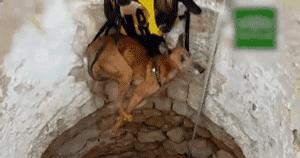 西班牙猎兔节后,动保组织从一个废弃的深井里救出来一只灵缇。