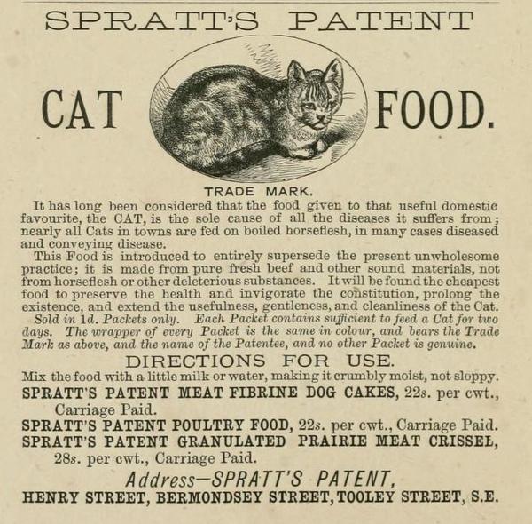 虽然他本人于1880年去世,但Spratts却作为最早推出专业狗粮的品牌成功存活下来,于20世纪50年代被通用磨坊收购。